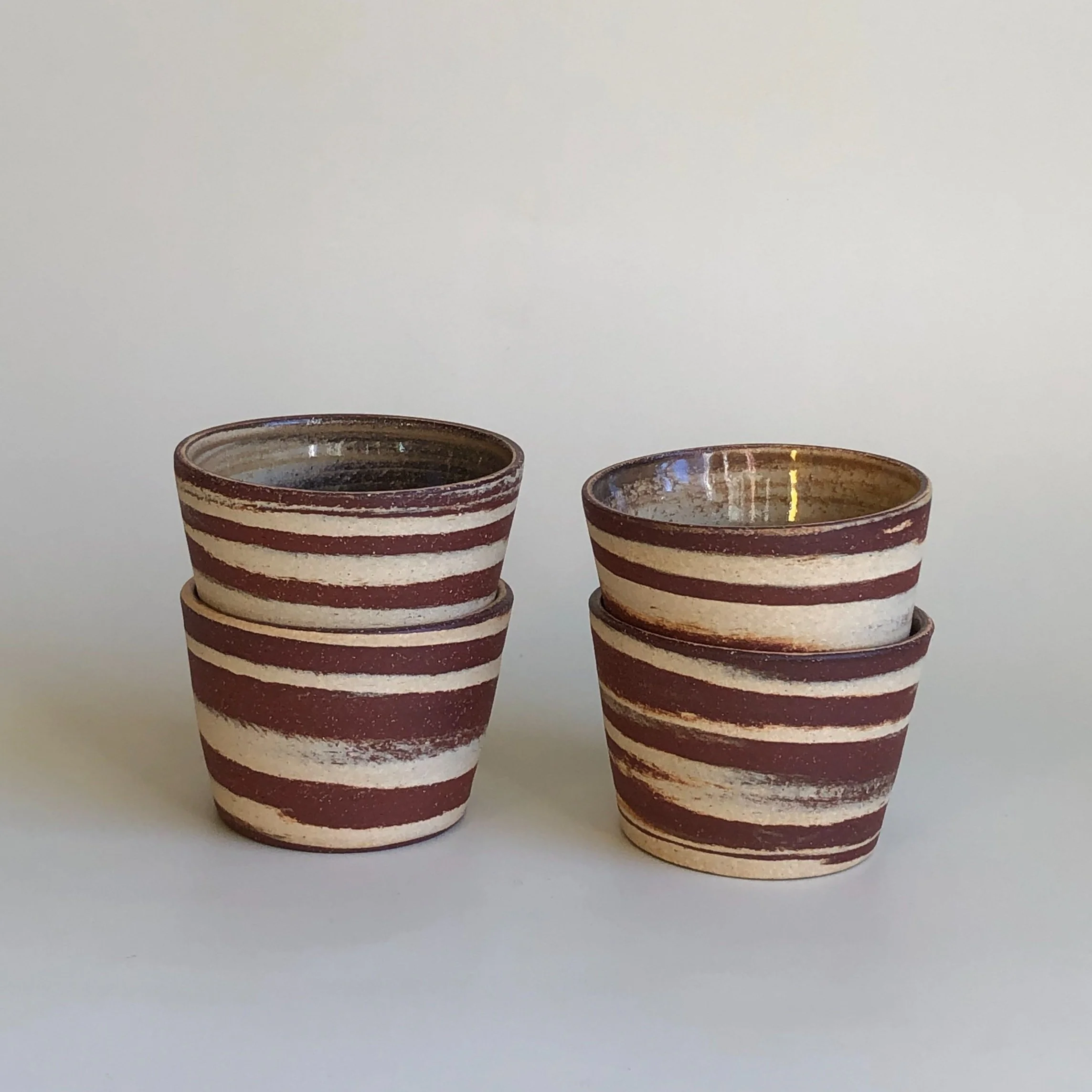 marbled on the wheel using multiple tones of clay, i’m proud to have developed this technique myself. each piece and the pattern it reveals is one of a kind, making them extra special.